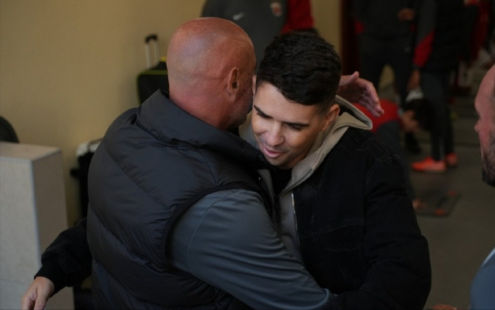 比分并不是这场比赛的重点,真正让球迷情绪被拉满的,是一个熟悉身影的出现,奥斯卡。比赛前,前海港外援奥斯卡携家人“空降”卡塔尔,来到海港在当地的驻地探班,并现场观看了与泽尼特的热身赛。海港新闻官赵昊晨在社交平台晒出了多张照片,其中包括奥斯卡赛前与主帅穆斯卡特打招呼的合影,以及比赛现场的画面,并配文写道:“奥斯卡携家人度假途径多哈,过来看看老朋友们。”一句话,信息量却不小。