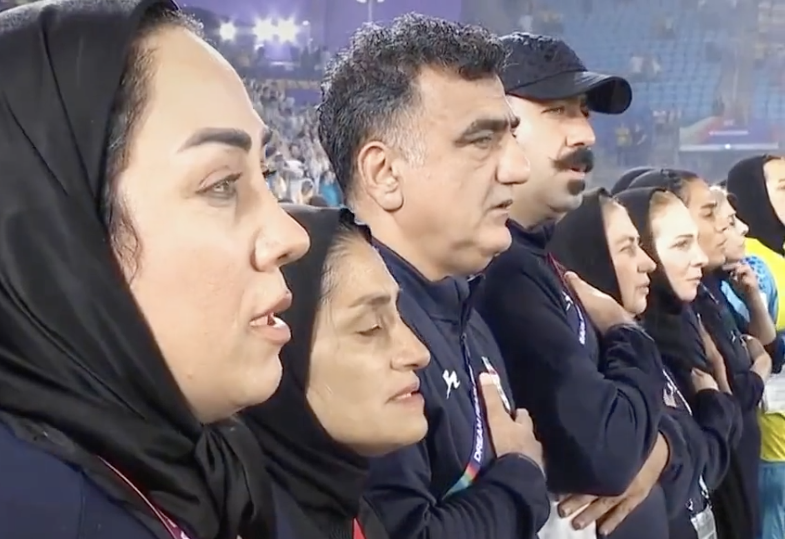 3月2日,亚洲杯首战,伊朗队对阵韩国队。赛前的唱国歌仪式中,伊朗女足集体沉默,没有跟唱国歌,引起巨大争议。网络上,有人称伊朗女足球员拒唱国歌,但更多人表示伊朗女队员不唱国歌是因为伊朗正处在全国哀悼期。